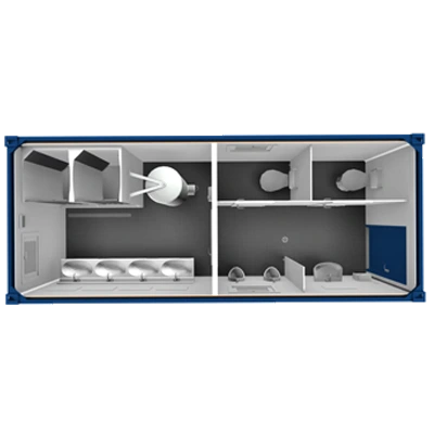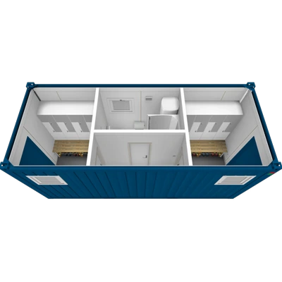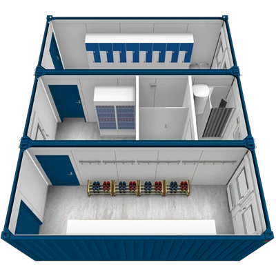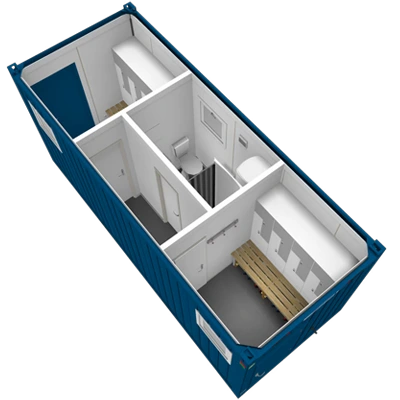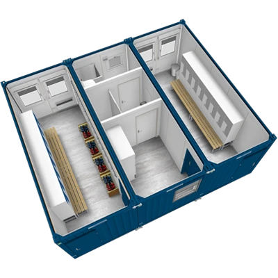 Moduler upp till 59 m² som kan innehålla flera sanitetsutrymmen, duschar och omklädningsrum